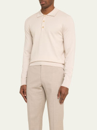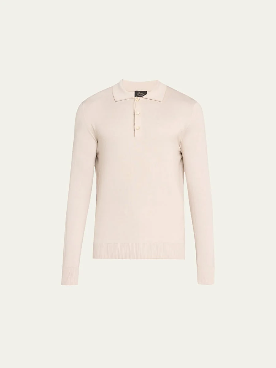 Brioni polo shirt in premium wool-blend fabric Spread collar; three-button placket Long sleeves Ribbed cuffs and hem Pullover style Classic fit Wool/silk/cashmere Made in Italy Model is 6'1"/185cm. Online Inquiries: BGS21_N9NR5| Store Inquiries: #4356551