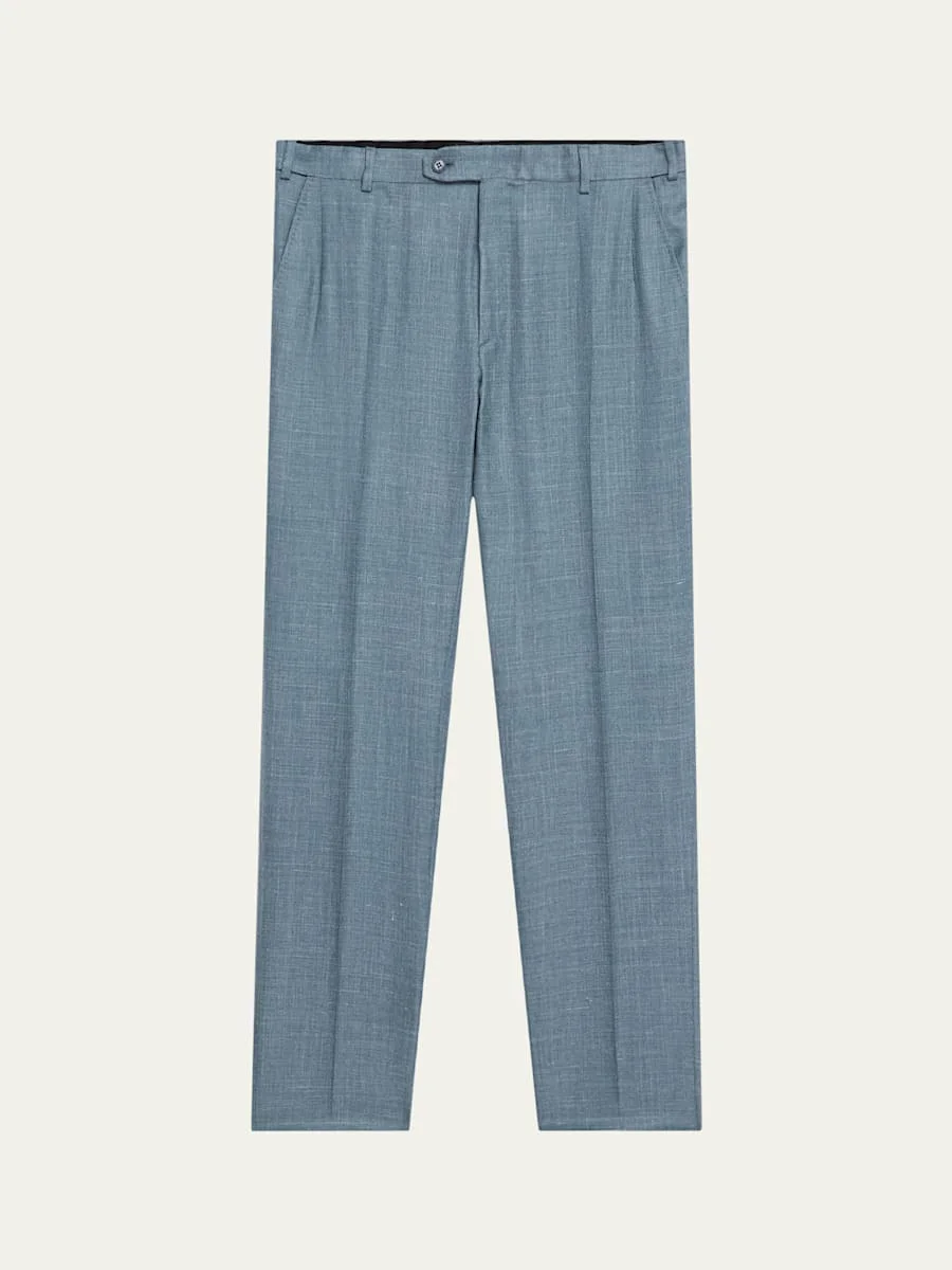 Brioni "Journey" melange trousers from the WWX 80th Anniversary capsule Regular rise Button-tab closure Darted front Side slip pockets Back welt pockets Full length Straight legs Silk/cashmere/linen Made in Italy Online Inquiries: BGS21_ND2XP| Store Inquiries: #5009823