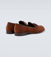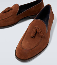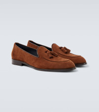 The epitome of Italian sartorial excellence, Brioni was founded in Rome in 1945. These loafers are crafted in Italy from smooth suede, featuring an elegant almond toe and classic tassels on the uppers. Product Details - Upper: leather (suede) - Lining: leather - Sole: leather insole and sole - Toe shape: almond toe - Made in Italy - Includes: dust bag, shoe box - Designer color name: Brown - Item color: brown - Item number: P01048070 Size & Fit - True to size - UK sizes