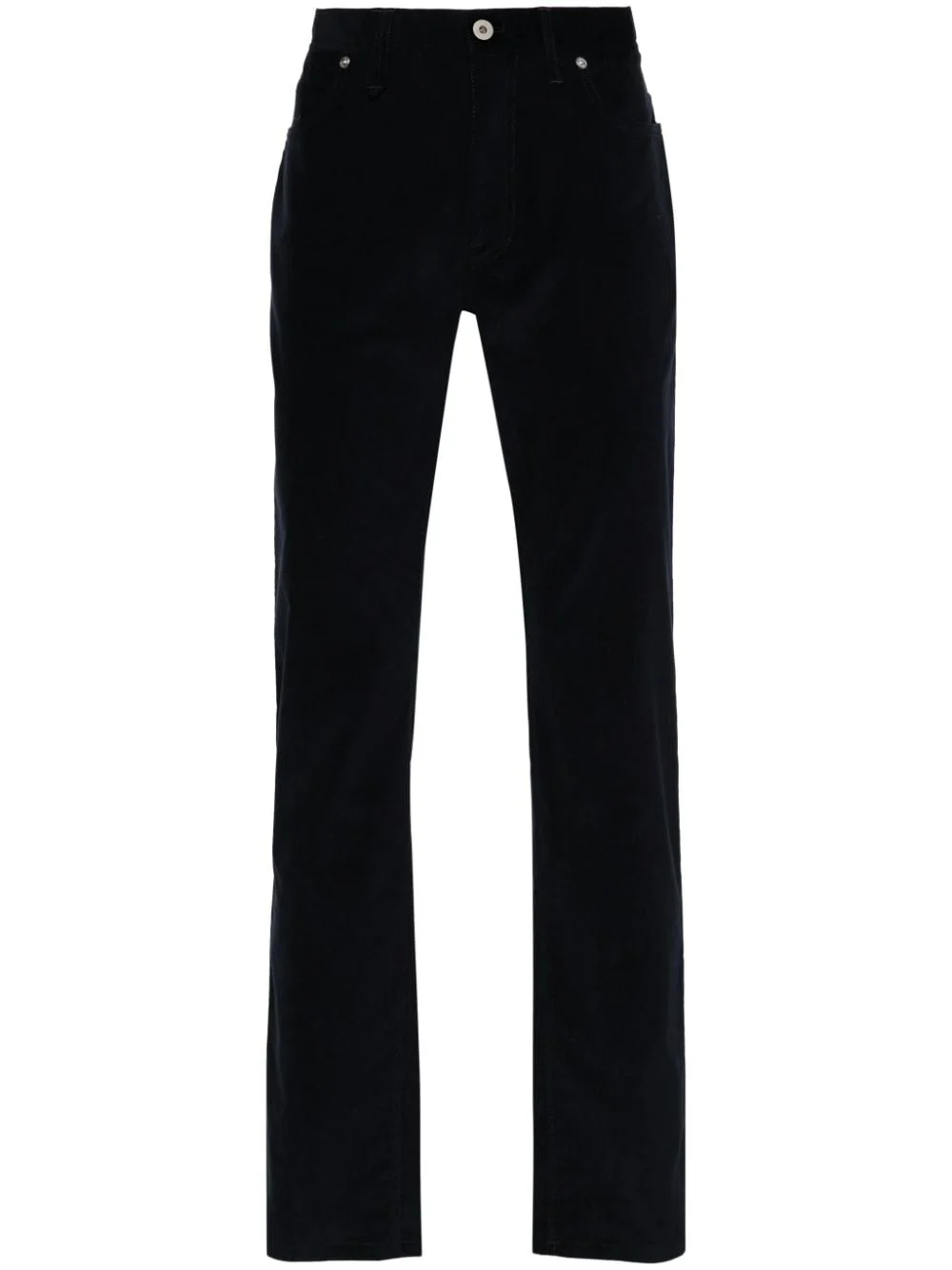 Meribel trousers Highlights - Midnight blue - Cotton blend - Corduroy - Belt loops - Classic five pockets - Rivet detailing - Logo patch to the rear - Full-length - Concealed zip-fly and button fastening Made in Italy Composition Outer: Calf Leather 100%, Cotton 97%, Spandex/Elastane 3% Lining: Polyester 65%, Cotton 35% SIZE & FIT Model measurements Height 6 ft 2 in(1.88 m) Bust/Chest 36.61 in(93 cm) Hips 35.82 in(91 cm) Waist 27.95 in(71 cm) FittingInformation Designed for a slim fit, these jeans offer a comfortable fit that sits just away from the leg This piece fits true to size – take your usual size Washing instructions Machine Wash