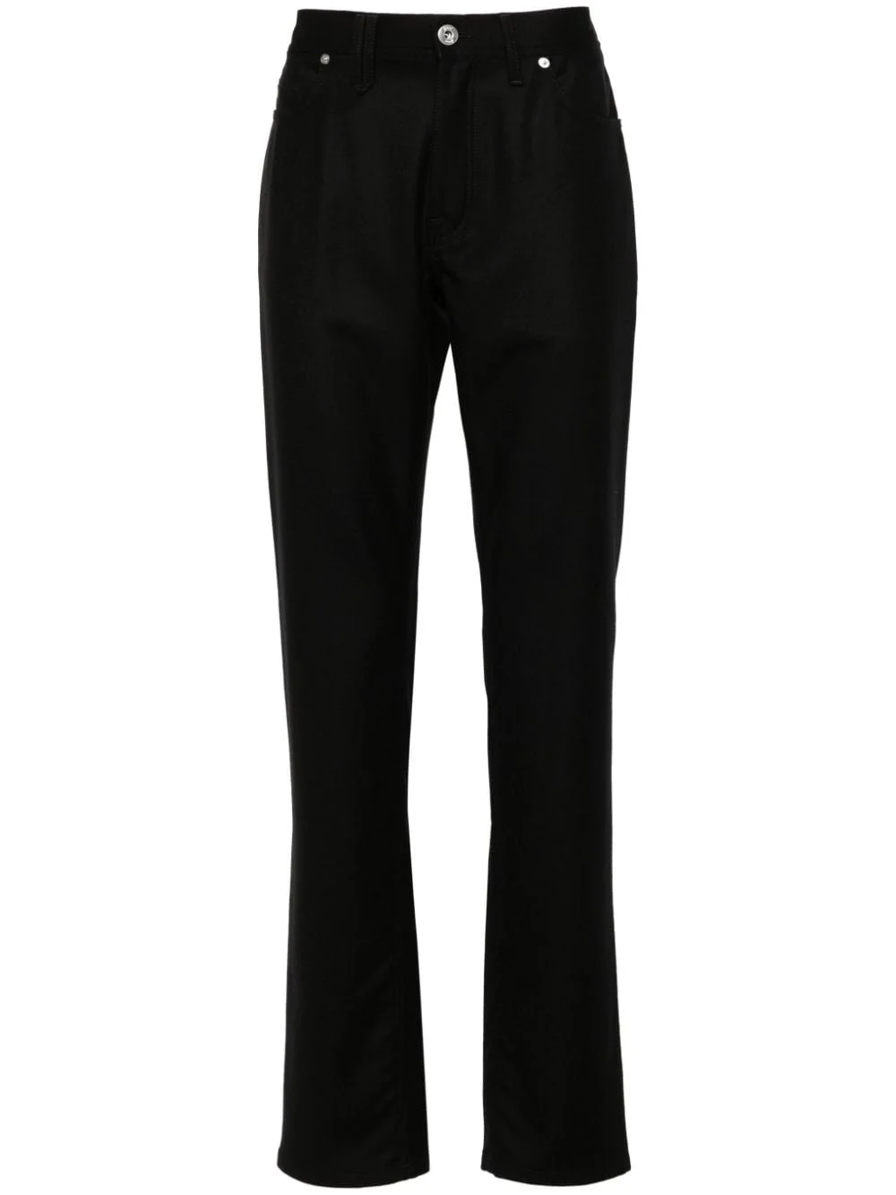 New Meribel trousers Highlights - Black - Wool - Flannel - Belt loops - Classic five pockets - Logo patch to the rear - Straight leg - Concealed fly and button fastening Made in Italy Composition Outer: Wool 100%, Calf Leather 100% Lining: Polyester 65%, Cotton 35% SIZE & FIT Model measurements Height 6 ft 2 in(1.87 m) Bust/Chest 36.41 in(92.5 cm) Hips 37 in(94 cm) Waist 29.52 in(75 cm) FittingInformation Designed for a slim fit, these jeans offer a comfortable fit that sits just away from the leg This piece fits true to size – take your usual size