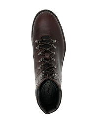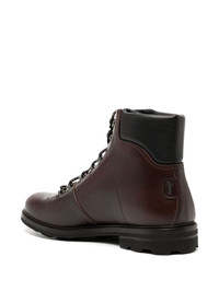 Oiled leather hiking boots Highlights - Chocolate brown - Front lace-up fastening - Padded ankle - Flat rubber sole - Round toe Made in Italy Composition Sole: Rubber 100% Outer: Leather 100% Lining: Leather 100% SIZE & FIT Measurement CIRCUMFERENCE 11.02 in(28 cm) HEEL 1.37 in(3.5 cm) HEIGHT 5.7 in(14.5 cm) Sole height 0.78 in(2 cm)