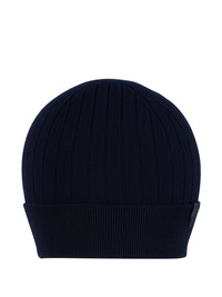 ribbed beanie hat Highlights - Navy blue - Ribbed knit - Folded brim - Logo patch Made in Italy Composition Wool 90%, Cashmere 10% Washing instructions Dry Clean Only
