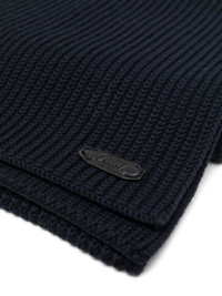 ribbed knit scarf ribbed knit scarf from BRIONI featuring midnight blue, lambskin, wool, ribbed knit, logo patch to the front, long length and straight hem. Made in Italy Composition Wool 100%, Lamb Skin 100% SIZE & FIT Measurement LENGTH 78.74 in(200 cm) WIDTH 11.81 in(30 cm) Washing instructions Dry Clean Only