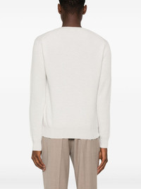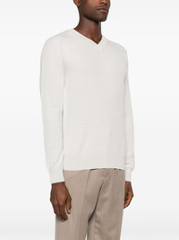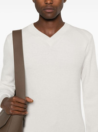 ribbed-knit sweater Highlights - Light grey - Cashmere-wool blend - Ribbed knit - Felted finish - V-neck - Long sleeves - Ribbed cuffs and hem - Straight hem Made in Italy Composition Cashmere 64%, Wool 36% SIZE & FIT Model measurements Height 6 ft 2 in(1.88 m) Bust/Chest 36.61 in(93 cm) Hips 35.82 in(91 cm) Waist 27.95 in(71 cm) FittingInformation Designed for a relaxed fit, this piece allows for comfort and movement when worn Made with a midweight knit, this piece offers some stretch