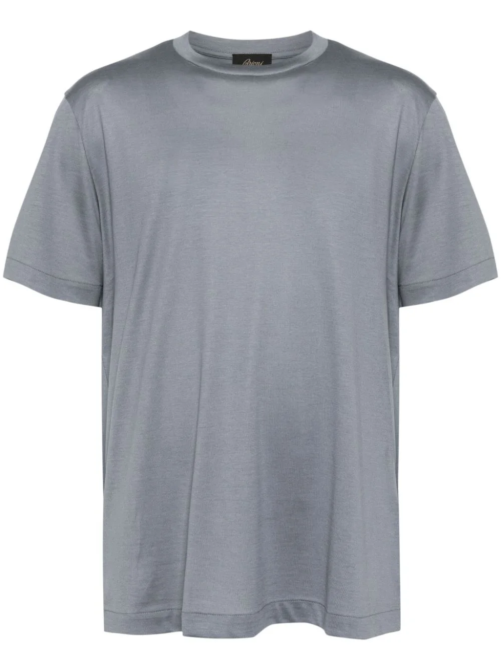 round-neck T-shirt Highlights - Cloud blue - Cotton/silk - Crew neck - Short sleeves - Straight hem - Lightweight Made in Italy Composition Silk 55%, Cotton 45% SIZE & FIT Model measurements Height 6 ft 2 in(1.88 m) Bust/Chest 34.25 in(87 cm) Hips 34.64 in(88 cm) Waist 26.77 in(68 cm) FittingInformation Designed for a regular fit allowing for a comfortably loose fit throughout the body Made from a lightweight non-stretch fabric, this piece offers minimal elasticity when worn