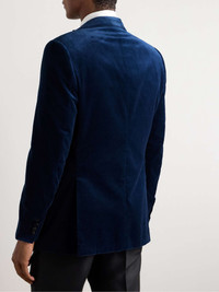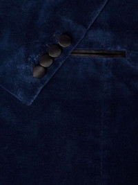 Brioni is considered the tailor to the stars, with an impressive clientele of renowned actors, musicians, athletes and artists. Ideal for the red carpet or an awards ceremony, this tuxedo jacket has been made in Italy from cotton-velvet and is trimmed with satin along the peak lapels, buttons and pockets. Size & Fit - Those who are above 6'1"/ 185cm may wish to take the next size up - Regular cut blazer, tailored for a comfortable fit - Internal shoulder pads - Mid-weight, non-stretchy fabric - Model is shown wearing an IT 50 - Model measures: chest 38"/ 96cm, height 6'1"/ 185cm Details & Care - Blue cotton-velvet, black silk-satin - Peak lapels, padded shoulders, non-functioning buttoned cuffs, chest and two front welt pocket, double vent, two internal pockets, fully lined - One button fastening - 100% cotton; trim: 100% silk; lining1: 100% cupro; lining2: 100% cotton - Dry clean