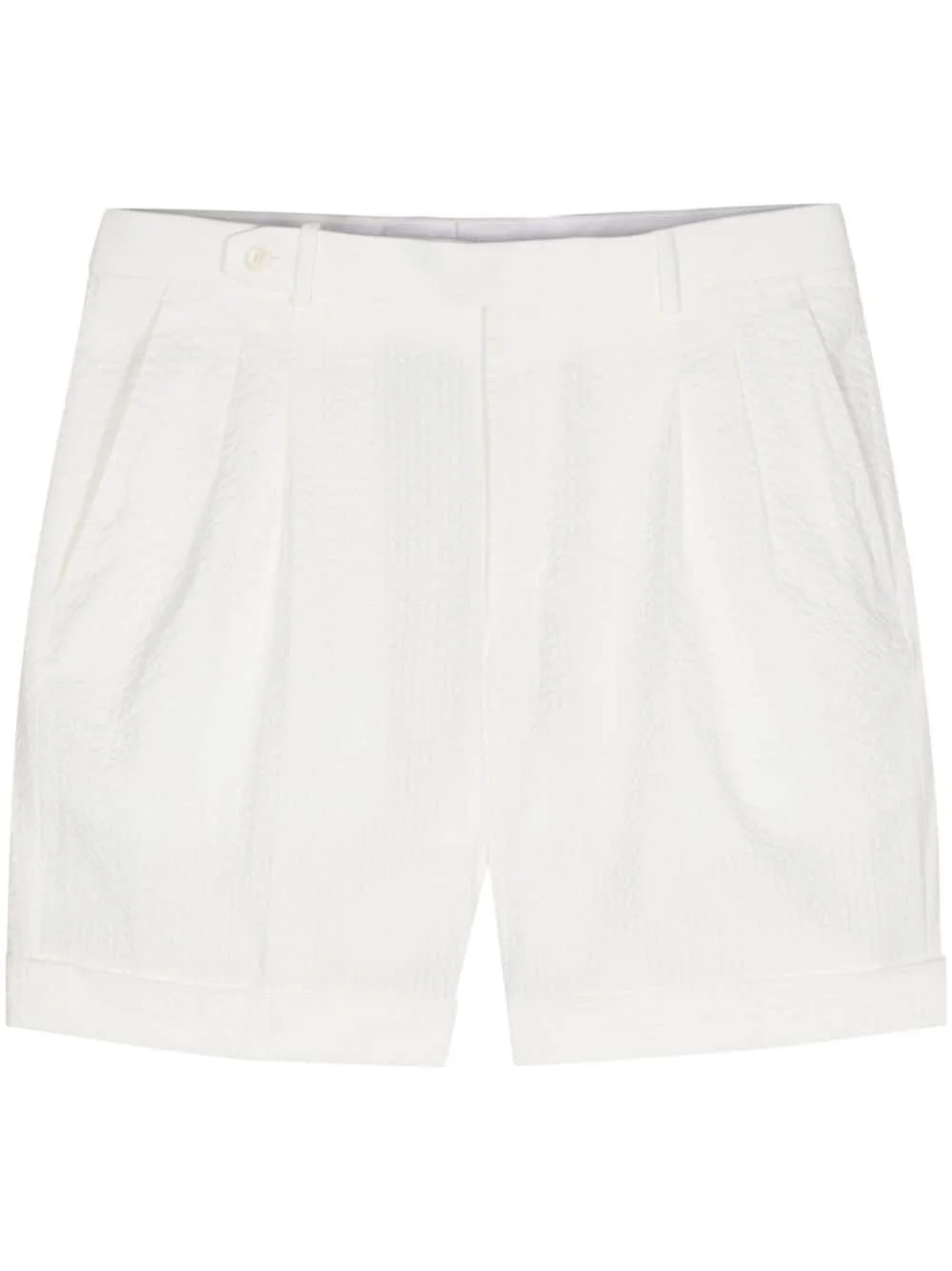seersucker chino shorts Highlights - White - Cotton - Seersucker texture - Pressed crease - Pleat detailing - Dart detailing - Mid-rise - Straight leg - Two diagonal pockets to the sides - Two rear welt pockets - Belt loops - Concealed front button, hook and zip fastening - Turn-up hem - Unlined Made in Italy Composition Lining: Modal 50%, Cotton 50% Outer: Cotton 100% Washing instructions Machine Wash