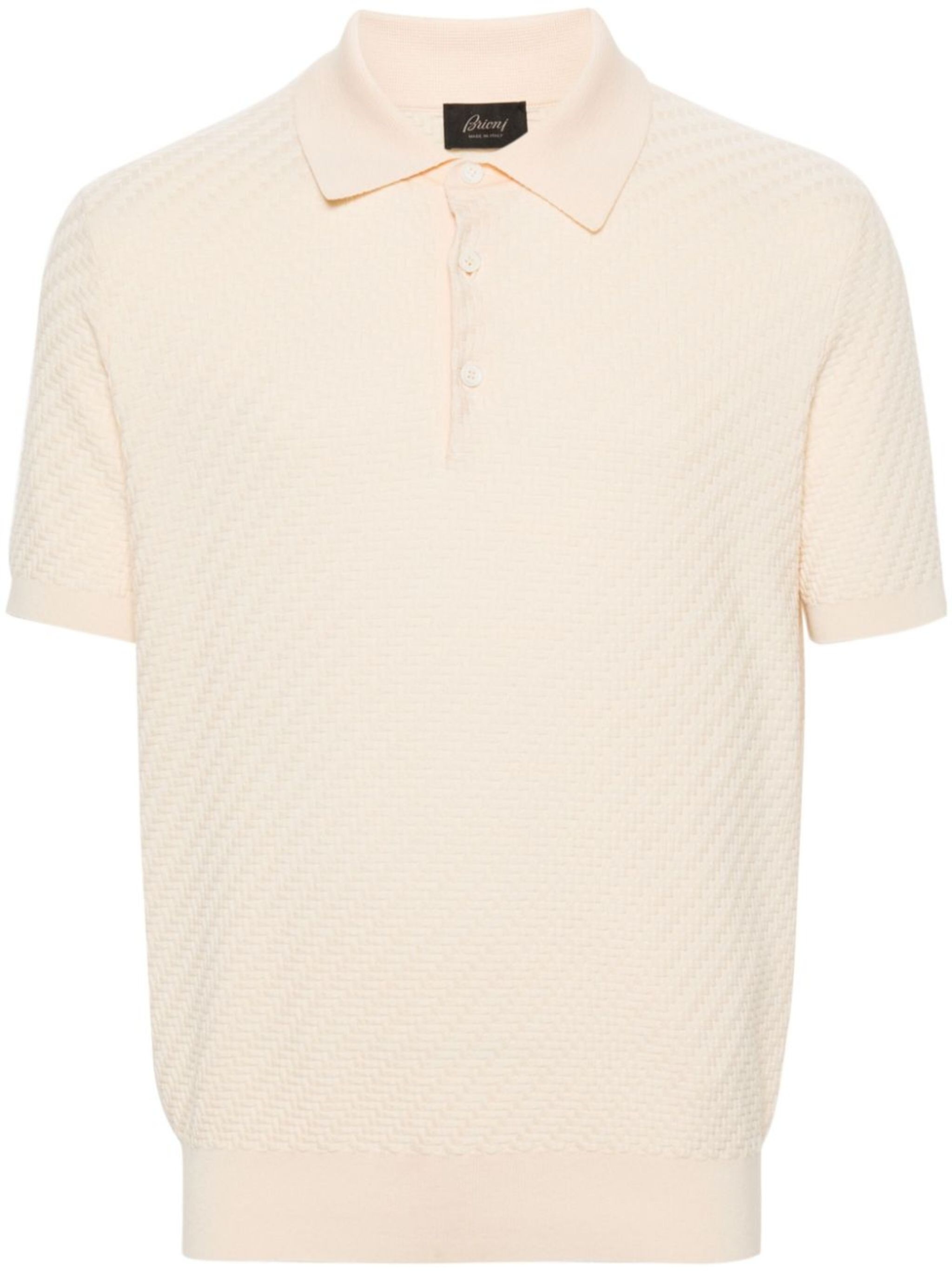 cream white cotton blend knitted construction interlock weave polo collar short sleeves ribbed trim straight hem front button placket Size & Fit Model Measurements: Height: 1.88 m Bust/Chest: 89.0 cm Hips: 92.0 cm Waist: 72.0 cm Model wears size 48 Fabric and Care Designer Style ID: UMR20OPAK22 Designer Colour: 9300 CREAM Composition: Cashmere 9%, Cotton 57%, Silk 34% Washing instructions: Dry Clean Only Made in Italy