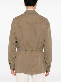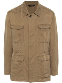 Sahariana shirt jacket Highlights - Light olive green - Linen-silk blend - Tonal stitching - Classic collar - Long sleeves - Buttoned cuffs - Four front flap pockets - Elasticated waistband with internal drawstring - Concealed front button fastening Made in Italy Composition Outer: Silk 62%, Linen/Flax 38% Lining: Cotton 100% SIZE & FIT Model measurements Height 6 ft 1 in(1.85 m) Bust/Chest 35.82 in(91 cm) Hips 37.79 in(96 cm) Waist 29.13 in(74 cm) FittingInformation Designed for a regular fit, allowing for a comfortably loose fit throughout the body The adjustable drawstring means that you can adjust this piece’s fit to suit your comfort and preference Made from a midweight non-stretch fabric This piece fits true to size – take your usual size