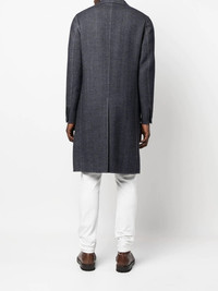 single-breasted wool coat blue virgin wool/cotton chest welt pocket side slit pocket side flap pocket front button fastening notched collar long sleeves mid-length straight hem Made in Italy Composition Lining: Cupro 100%, Cotton 100% Outer: Virgin Wool 100% SIZE & FIT Model measurements Height 6 ft 0 in(1.84 m) Bust/Chest 35.82 in(91 cm) Hips 37 in(94 cm) Waist 28.34 in(72 cm) FittingInformation This piece fits true to size. We recommend you get your regular size Cut for a slim fit Made with a mid-weight non-stretch fabric Washing instructions Dry Clean Only