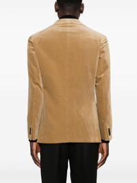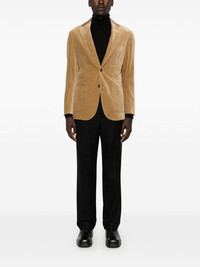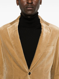 Soffio single-breasted blazer Highlights - Camel brown - Cotton blend - Velvet - Dart detailing - Notched lapels - Front button fastening - Chest welt pocket - Two side patch pockets - English rear vents - Straight hem - Logo-jacquard lining Made in Italy Composition Outer: Cotton 72%, Modal 28% Lining: Cupro 100%, Cotton 100% SIZE & FIT Model measurements Height 6 ft 2 in(1.87 m) Bust/Chest 36.41 in(92.5 cm) Hips 37 in(94 cm) Waist 29.52 in(75 cm) FittingInformation Designed for a slim fit, offering a comfortable fit that sits just away from the body The vented hem offers movement at the rear Made from a midweight non-stretch fabric This piece fits true to size – take your usual size