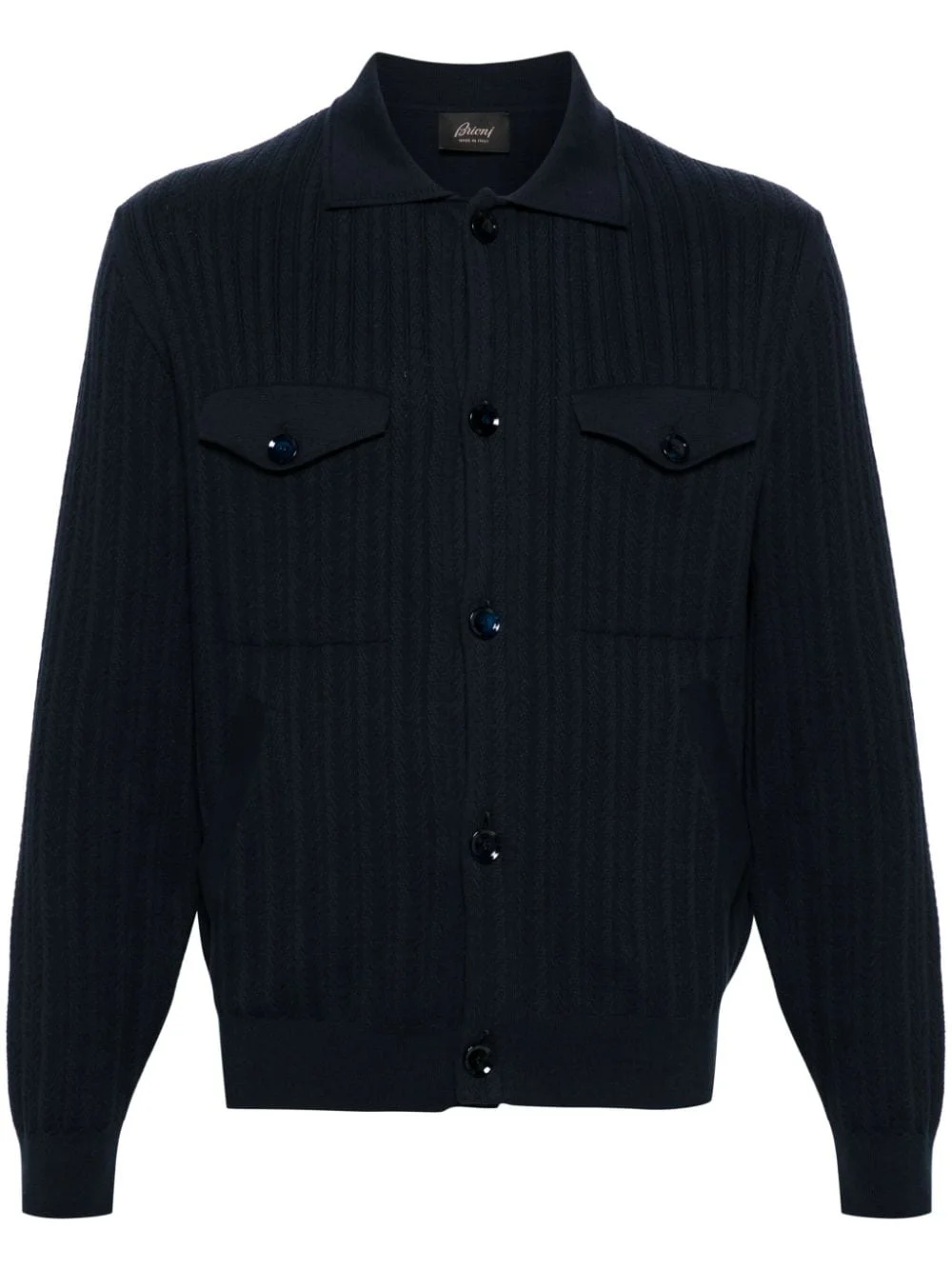 spread-collar buttoned cardigan Highlights - Navy blue - Cotton blend - Knitted construction - Ribbed trim - Spread collar - Front button fastening - Long sleeves - Two chest flap pockets - Two side welt pockets - Straight hem Made in Italy Composition Cotton 90%, Cashmere 9%, Wool 1% SIZE & FIT Model measurements Height 6 ft 2 in(1.87 m) Bust/Chest 36.41 in(92.5 cm) Hips 37 in(94 cm) Waist 29.52 in(75 cm) FittingInformation Designed for a relaxed fit, this piece allows for comfort and movement when worn Made with a midweight knit, this piece offers some stretch This piece fits true to size – take your usual size