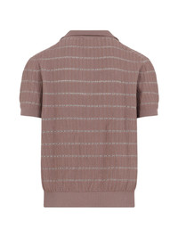 striped V-neck T-shirt Highlights - Powdered rose - Horizontal stripe - V-neck - Short sleeves - Knitted design - Polo collar Made in Italy Composition Cotton 100% Washing instructions Read Manufacturer Guidelines