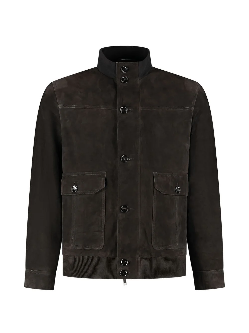 buttoned bomber jacket Highlights - Brown - Button fastening - Two front pockets - Ribbed hem and collar - Long sleeves Made in Italy Composition Calf Leather 100% Washing instructions Read Manufacturer Guidelines