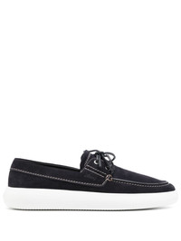 suede loafers Highlights - Navy blue - Front lace-up fastening - Contrast stitching - Rubber sole Made in Italy Composition Outer: Leather 100% Lining: Suede 100% Sole: Rubber 100%