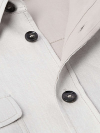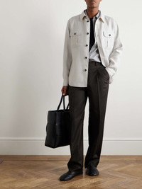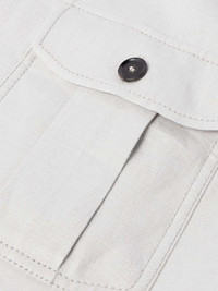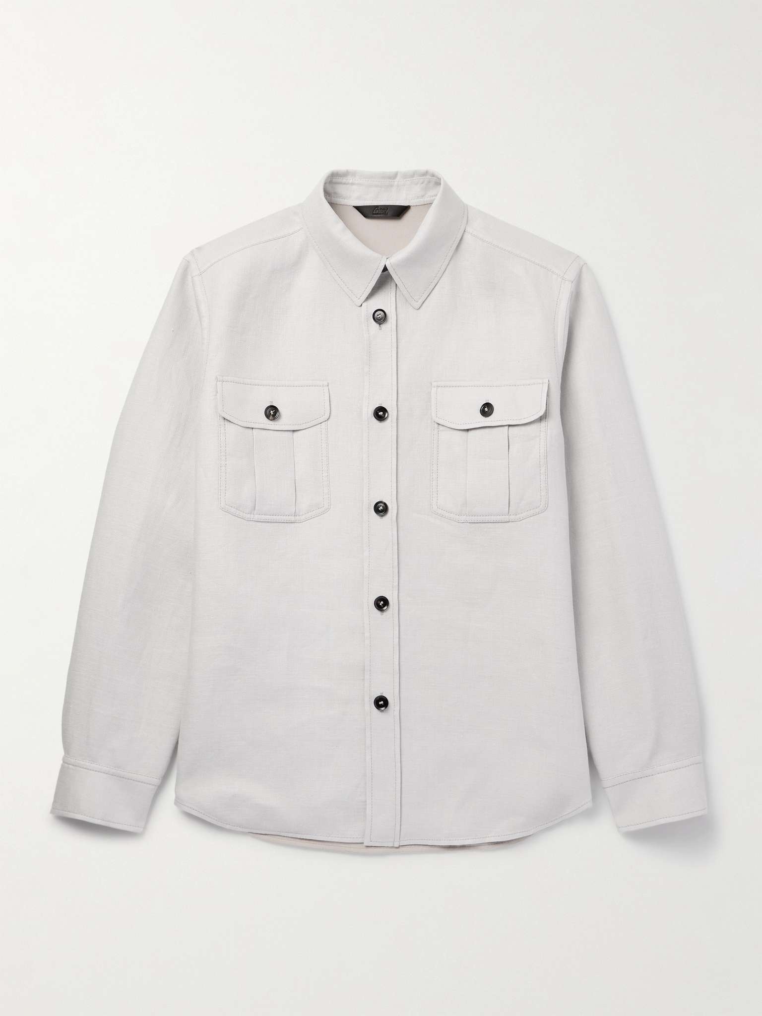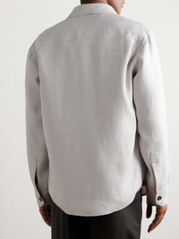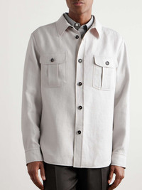 Brioni's overshirt is the label’s take on traditional safari jackets. It's made from linen and wool-blend twill with roomy bellows pockets that are signature to the style. Wear it as a mid-layer or as outerwear during warmer spells. Size & Fit - Fits true to size. Take your normal size - Designed for a slightly loose fit - Mid-weight, non-stretchy fabric - Model is shown wearing a M - Model measures: chest 38"/ 96cm, height 6'1"/ 185cm Details & Care - Light-grey linen-blend twill - Button fastenings - 55% linen, 44% wool, 1% polyamide - Dry clean