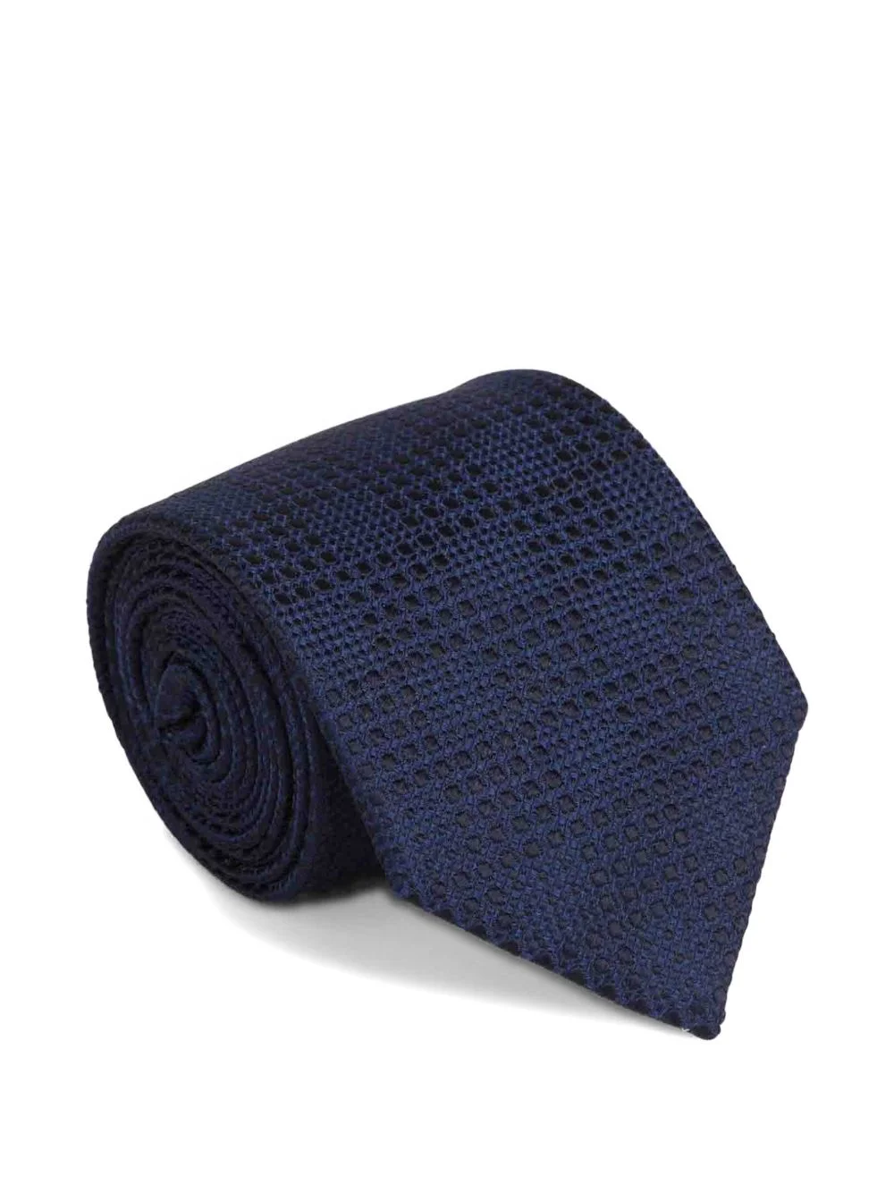 textured silk tie Highlights - Navy blue - Textured - Pointed tip Made in Italy Composition Silk 100% SIZE & FIT Measurement LENGTH 3.14 in(8 cm)