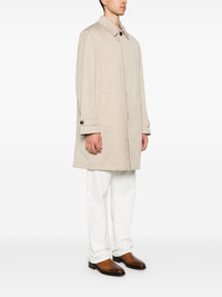 cotton coat Highlights - Light beige - Cotton - Twill weave - Classic collar - Long sleeves - Belted cuffs - Two side slit pockets - Buttoned central rear vent - Detachable internal panels - Straight hem - Concealed front button fastening Made in Italy Composition Outer: Cotton 100%, Cupro 100% Lining: Cupro 100%, Cotton 100%, Sheepskin 100%, Cashmere 99%, Polyamide 1% SIZE & FIT Model measurements Height 6 ft 2 in(1.87 m) Bust/Chest 36.22 in(92 cm) Hips 35.43 in(90 cm) Waist 29.13 in(74 cm) FittingInformation Designed to be unstructured, offering a loose fit throughout The detachable internal gilet offers a roomier fit Made from a midweight non-stretch fabric This piece fits true to size – take your usual size