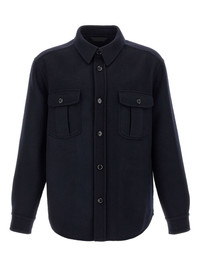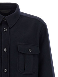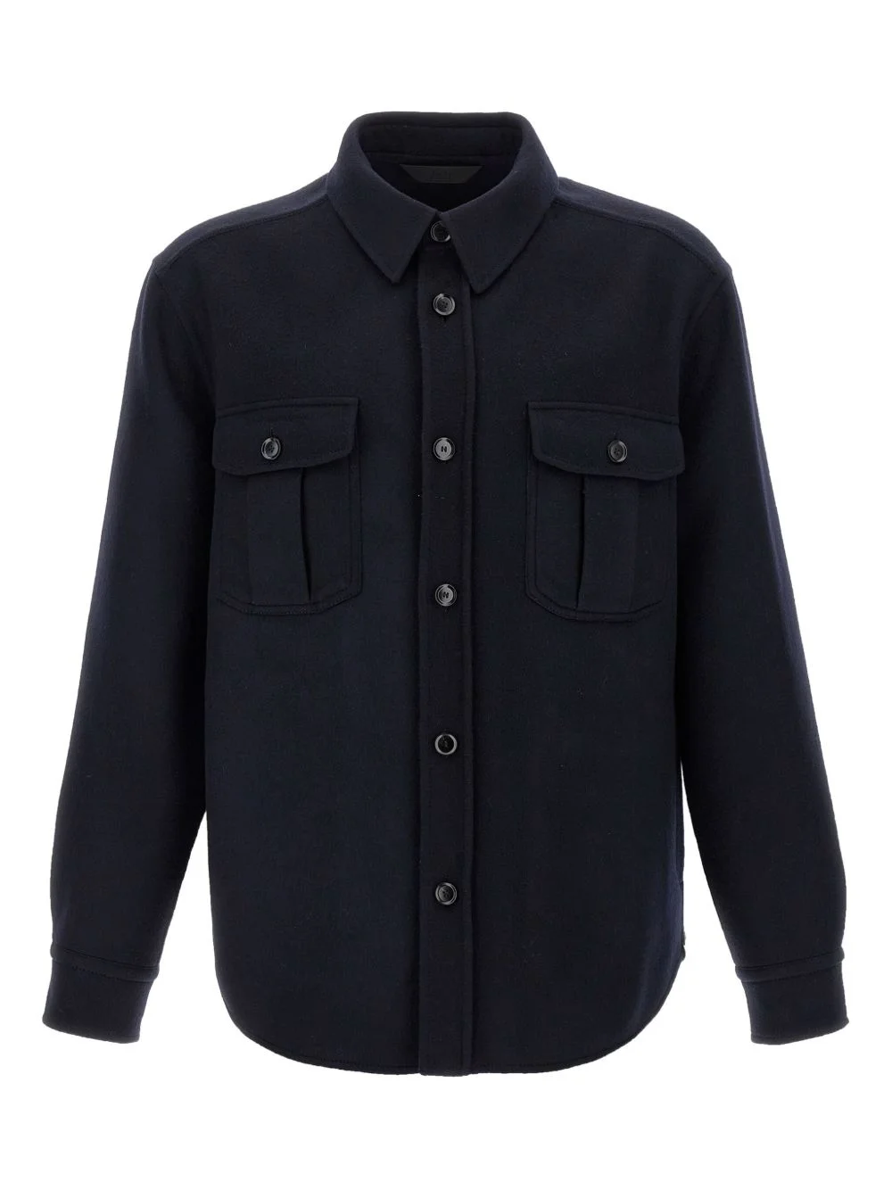 button-cuffed overshirt Highlights - Navy blue - Front button closure - Long cuffed sleeves - Flap pockets - Buttoned cuffs Made in Italy Composition Wool 60%, Cashmere 40% Washing instructions Read Manufacturer Guidelines