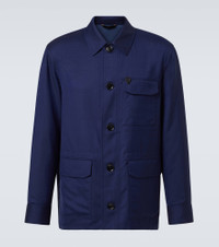 Product Details - Material: 85% wool, 15% silk - Care instructions: dry clean - Made in Italy - Designer color name: 14/7 Royal/Bitumen - Closure: buttoned front - Pockets: flap pockets, internal pocket - Lining: 100% cotton - Contains non-textile parts of animal origin - Item number: P00987379 Size & Fit - True to size - Designed for a loose fit - Non-stretchy fabric - Falls below the hip - Height of model is %cm%cm-%inch%" and wears a size L
