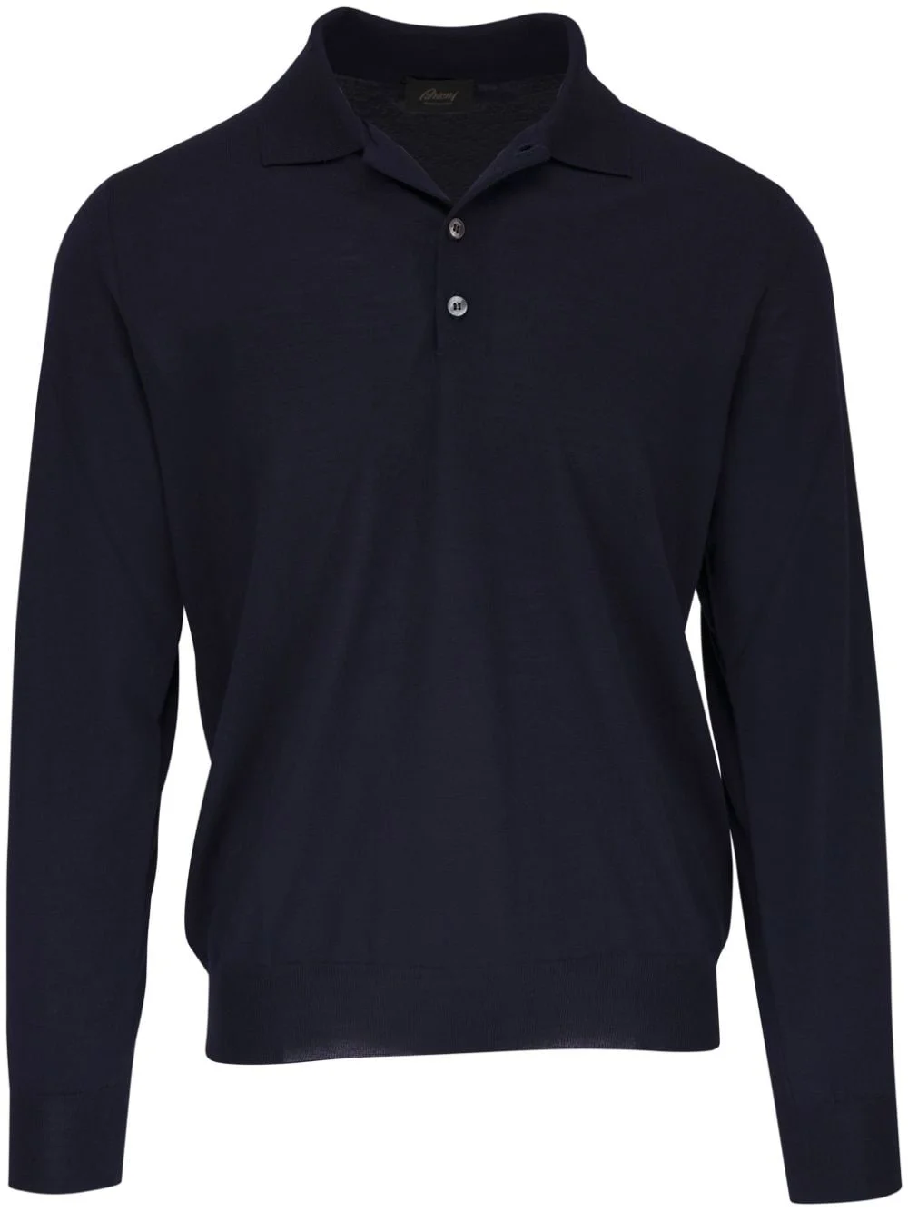 Wool Sweatshirt Highlights - Navy blue - Wool blend - Long sleeves - V-neck - Button-down collar Made in United States Composition Wool 40%, Silk 30%, Cashmere 30%