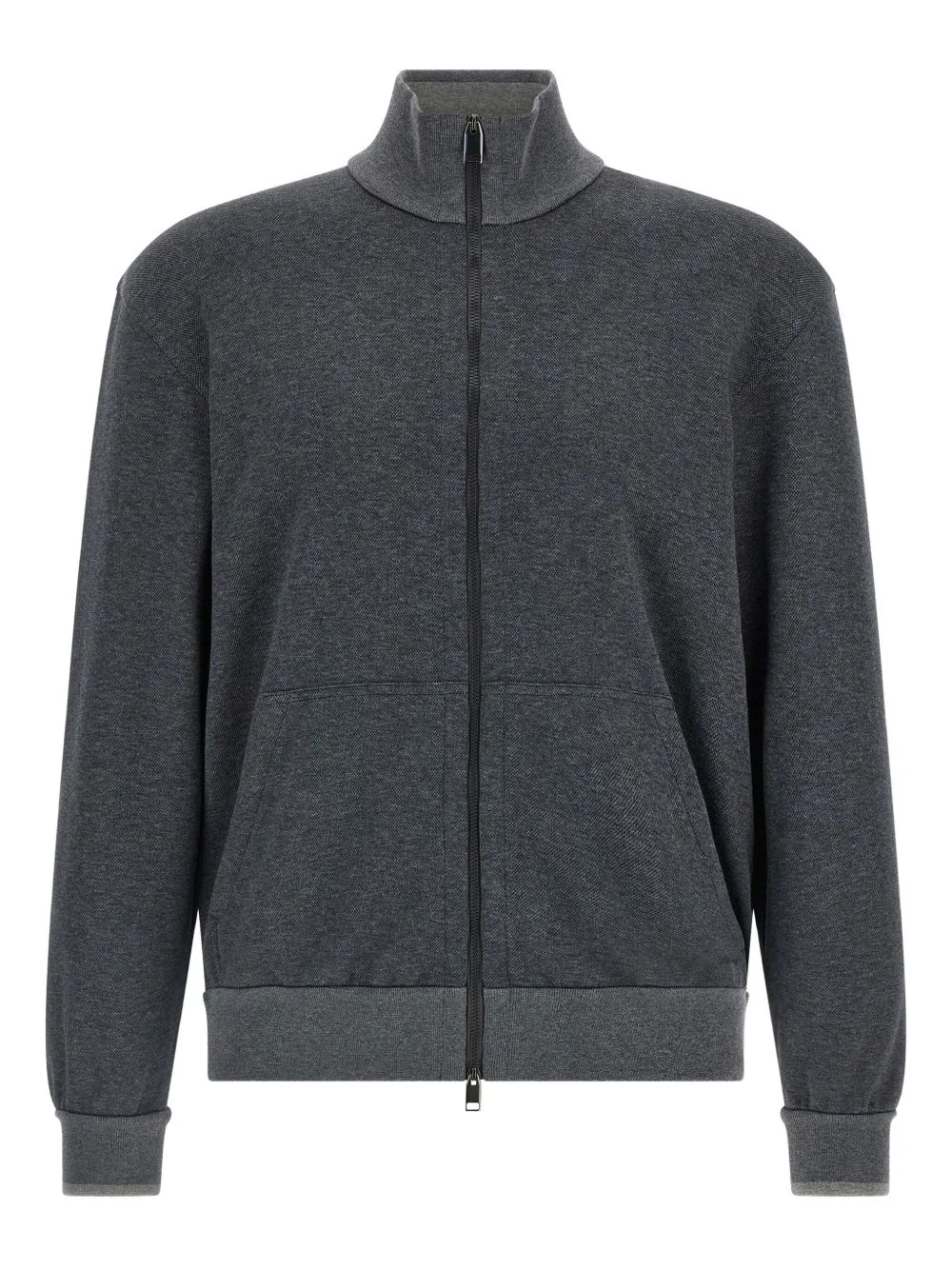 zip-front sweatshirt Highlights - Grey - Pique texture - Zip closure - Dropped shoulders - Cuffed sleeves - Kangaroo pocket Made in Italy Composition Cotton 93%, Polyamide 7% Washing instructions Read Manufacturer Guidelines