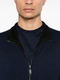 zip-up cardigan Highlights - Midnight blue - Knitted construction - Front two-way zip fastening - Stand-up collar - Two side welt pockets - Long sleeves - Ribbed cuffs and hem Made in Italy Composition Cotton 42%, Cashmere 35%, Silk 15%, Polyamide 6%, Elastane 2% SIZE & FIT Model measurements Height 6 ft 1 in(1.85 m) Bust/Chest 35.82 in(91 cm) Hips 37.79 in(96 cm) Waist 29.13 in(74 cm) FittingInformation Designed for a slim fit, offering a comfortable fit that sits just away from the body The ribbed hem offers a close, comfortable fit Made from a midweight non-stretch fabric, this piece offers minimal elasticity when worn