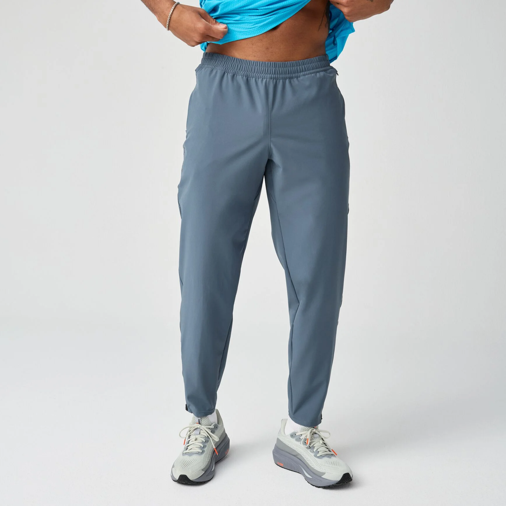 Have no fear in windy, rainy weather with our men's water-resistant pants. Featuring 4-way stretch fabric for unrestricted movement as you take on the elements. Best for: Light rain, Windy conditions, Layering, Warm ups and cool downs Fit: Semi Fitted Follows the shape of your body, with some breathing room for unrestricted movement. Features: Water resistant, Regular: 29" inseam, Tall: 31" inseam, Ankle zippers, Four-way stretch fabric, Elastic waistband and internal drawcord Recycled fabric level: 5.2 % Recycled materials