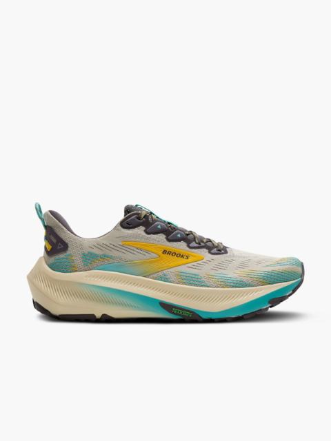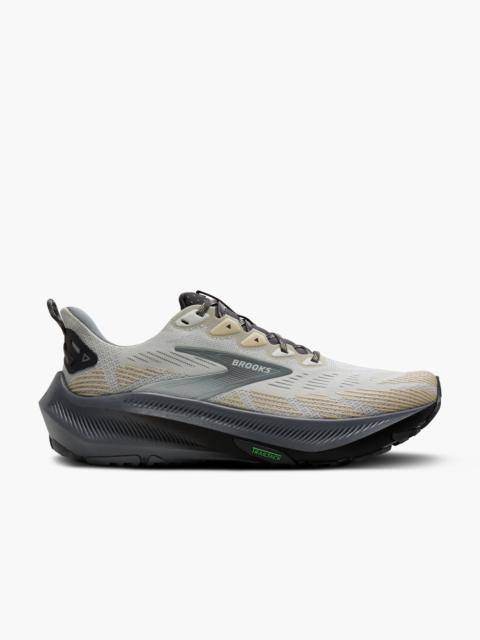 Feel confident venturing off-road in the men's Ghost Trail shoe. Our versatile new shoe is a hybrid that delivers cross-terrain features for trail and road. Best for: Off-road running, City Parks, Gravel terrain, Groomed trails Cushion: Balanced A blend of soft and dynamic cushioning that offers a smooth feeling with each step. Support: Balanced support Secure heel with dynamic forefoot helps provide inherent stability Midsole drop: 8mm Weight: 10.6oz / 300.5g Features: Nitrogen-infused cushion, All-terrain traction, Breathable mesh upper Sustainability: 62.3 % Recycled materials in the upper