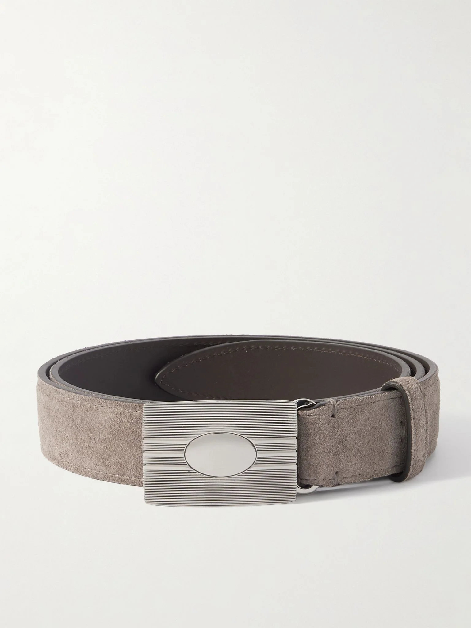 Brunello Cucinelli is renowned for its textiles - this belt is made from supple suede that's been tanned and brushed at the label's workshop in Italy. It's cut in a medium width and centred by a ridged, silver-tone buckle. Wear yours with jeans, cords or slacks. Size & Fit - Fits true to size. Take your normal size - Model is shown wearing a 90 - Model measures: waist size 32 Details & Care - Grey suede (Calf) - Silver-tone buckle fastening