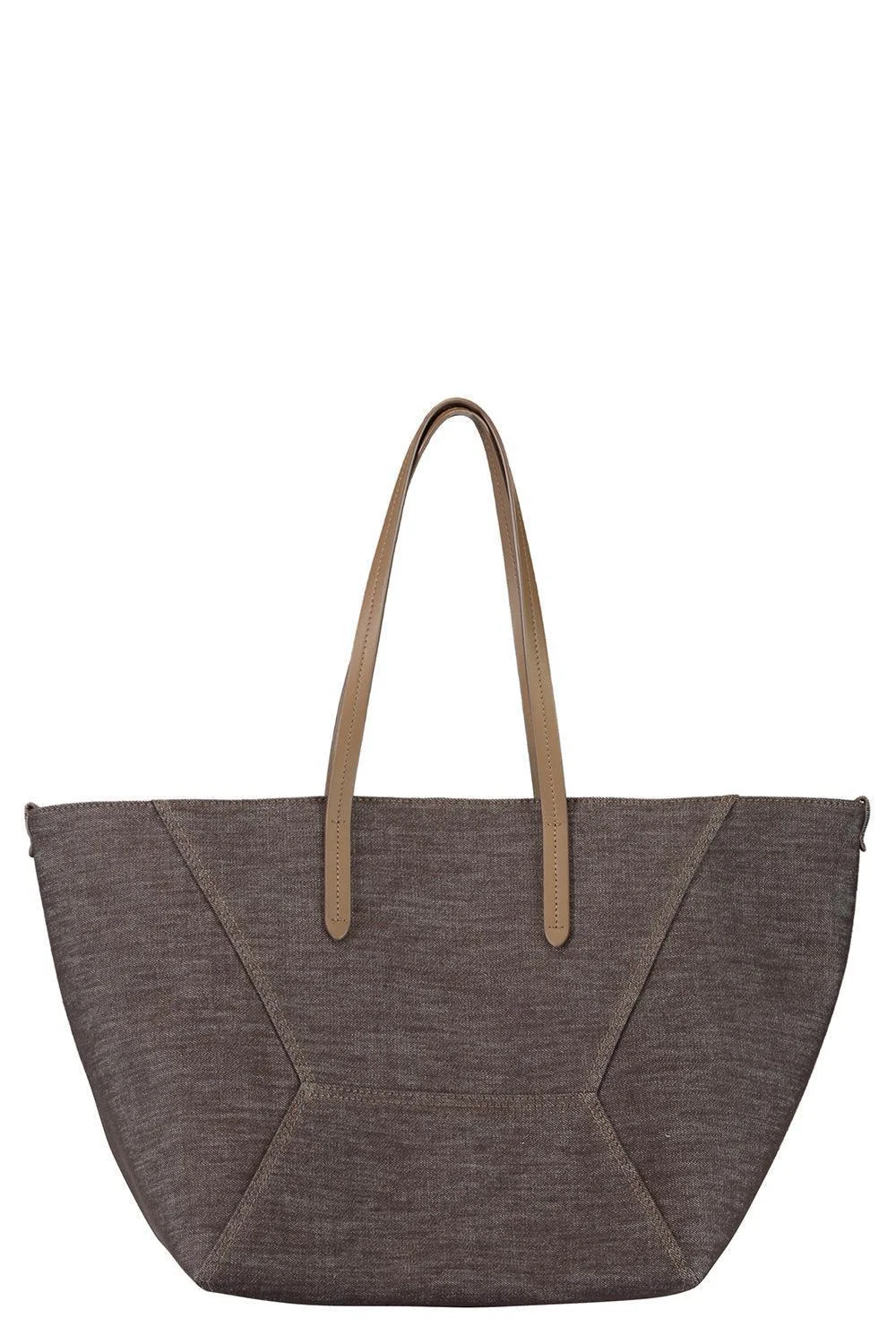 DETAILS AND INSIGHT Brunello Cucinelli bc duo bag in chocolate. 100% COTTON Magnetic snap closure, Internal pocket with zip closure 20.87 x 9.06 x 10.63" Fits Iphone 16 Pro Max Made in Italy Style MB25D2571-C003