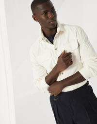 Modern, innovative materials enrich the casual style of this shirt-style outerwear. Completely unlined, the garment is made of water-resistant microfiber with a smooth, silky hand, and is finished on the inside with heat-seal taping that guarantees protection from the elements. The outerwear is completed with distinct details such as chest pockets, a button closure and a shirt collar. MATERIALS A refined Japanese fabric, microfiber uses a polyamide thread wrapped in another made of polyester. A special process gives the surface a slight shimmering effect and a velvety texture, which is very fluid and pleasant to touch. Lastly, a finish helps to protect the fabric from light water contact. DETAILS Double closure with zip and snaps Shirt-style collar Upper patch pockets with flap and button Hand pockets with snap Snap cuffs Unlined 70% POLYESTER, 30% NYLON