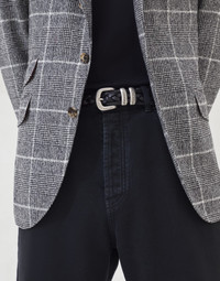 The vintage yet contemporary character of this woven belt is emphasized by Brunello Cucinelli’s refined materials. The leather’s soft texture and braided pattern pairs with engraved details on the shiny buckle, keepers and tip. MATERIALS The calfskin leather offers a smooth, compact and semi-polished texture that enriches the season’s intense colors. DETAILS Belt height approx. 3 cm (1,18") All metal parts are Nickel-free REAL LEATHER