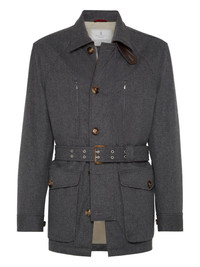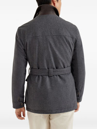 belted padded jacket Highlights - Anthracite - Button fastening - Belt - Front flap pockets - Zip pockets Made in Italy Composition Wool 100% Washing instructions Specialist Cleaning