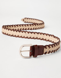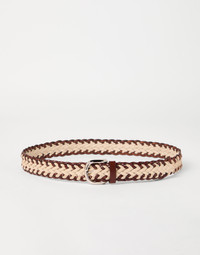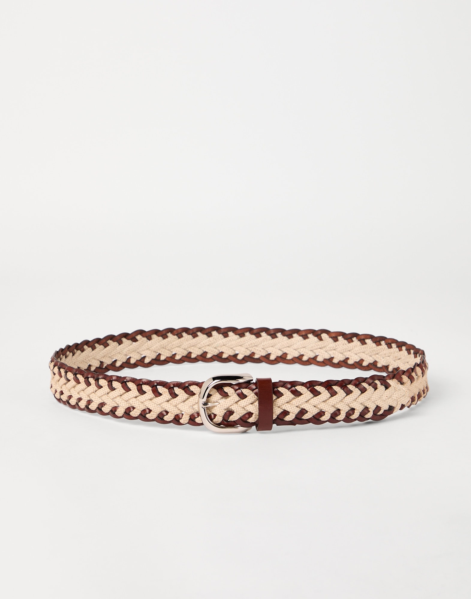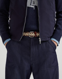 A precious, must-have menswear accessory, this braided belt combines nautical inspiration and careful material research. The two-tone braid enhances the balanced contrast between the coarse texture of canvas and the leather’s soft, polished surface. MATERIALS Refined materials and a fascinating contrast of textures enriches the nautical inspiration: the naturally coarse surface of canvas enhances the softness of the leather in a balanced braid created with artisanal techniques. DETAILS Belt height approx. 3.5 cm (1.38") All metal parts are Nickel-free 63% COTTON, 37% LINEN