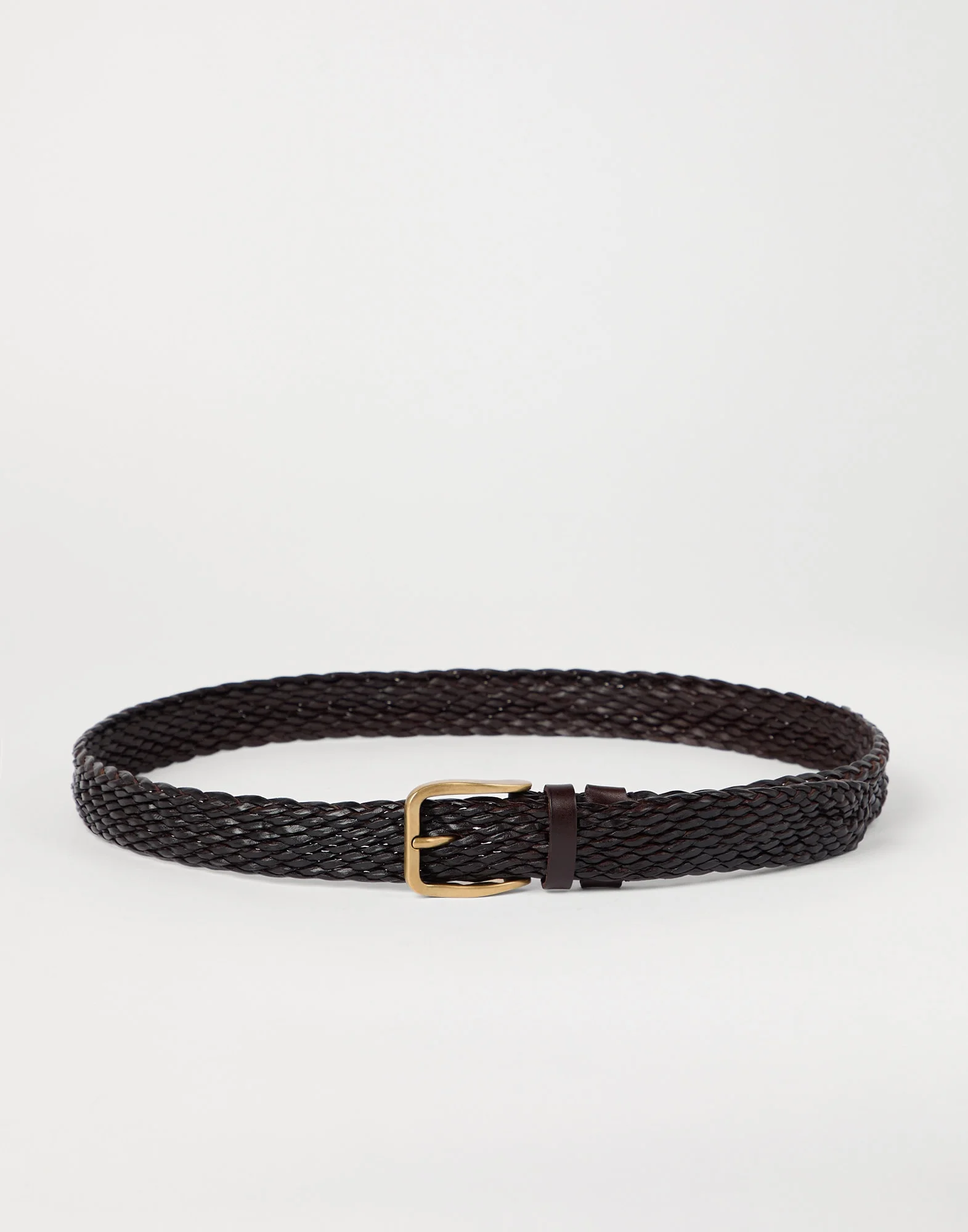 A precious accessory to complete a look with a retro detail, this belt is characterized by the refined woven calfskin texture and the antiqued look of the brass buckle. MATERIALS The calfskin leather offers a smooth, compact and semi-polished texture that enriches the season’s intense colors. DETAILS Belt height approx. 3 cm (1,18") REAL LEATHER