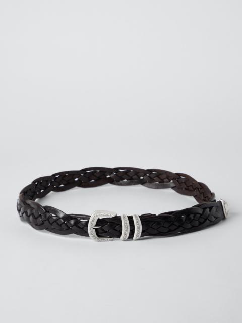 The vintage yet contemporary character of this woven belt is emphasized by Brunello Cucinelli’s refined materials. The leather’s soft texture and braided pattern pairs with engraved details on the shiny buckle, keepers and tip. MATERIALS The calfskin leather offers a smooth, compact and semi-polished texture that enriches the season’s intense colors. DETAILS Belt height approx. 3 cm (1,18") All metal parts are Nickel-free REAL LEATHER