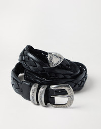 Braided calfskin belt with detailed buckle and tip