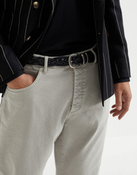 The vintage yet contemporary character of this woven belt is emphasized by Brunello Cucinelli’s refined materials. The leather’s soft texture and braided pattern pairs with engraved details on the shiny buckle, keepers and tip. MATERIALS The calfskin leather offers a smooth, compact and semi-polished texture that enriches the season’s intense colors. DETAILS Belt height approx. 3 cm (1,18") All metal parts are Nickel-free REAL LEATHER