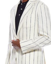 - About the brand: Hailed for its beautifully-crafted cashmere pieces, Brunello Cucinelli was named GQ's Designer of the Year in 2021. With attention to craftsmanship and sustainability, the company exemplifies Italian luxury. - Please note: Size selections are European. For US conversions, please reference the size chart. - Color/pattern: ivory - Blazer: - Approximately 29in from shoulder to hem - Design details: notch lapel, and front pockets - Double-button closure - Pant: - Inseam approximately 30in - Design details: belt loops, and side pockets - Zip fly with slide tab closure - Model is 6'2 and is wearing a size 48. Measurements may vary slightly by size. - 48% linen, 24% wool, 16% polyester, 12% silk - Lining: 100% cupro - Dry clean only - Made in Italy - Our products are 100% genuine. In some cases we purchase merchandise from trusted independent suppliers and not directly from the brand owner. In all cases we stand by the authenticity of every product sold on our site.