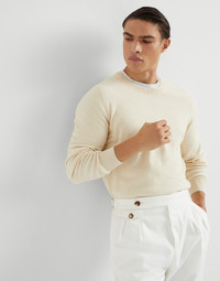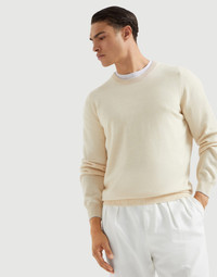 A timeless classic, this pure cashmere sweater represents an icon of the Brunello Cucinelli collections. The natural cashmere fiber’s superior quality enhances its comfortable fit, which is both lightweight and cozy. The contrast color edges of the cuffs and the inside of the crew-neck complete the style of this garment with refined details. MATERIALS The noble cashmere fiber is characterized by an extreme fineness and also for its precious insulating qualities which guarantee warmth, providing coverage and lightness when worn. DETAILS Crew-neck in rib knit Rib knit cuffs and bottom band Plain stitch 100% CASHMERE