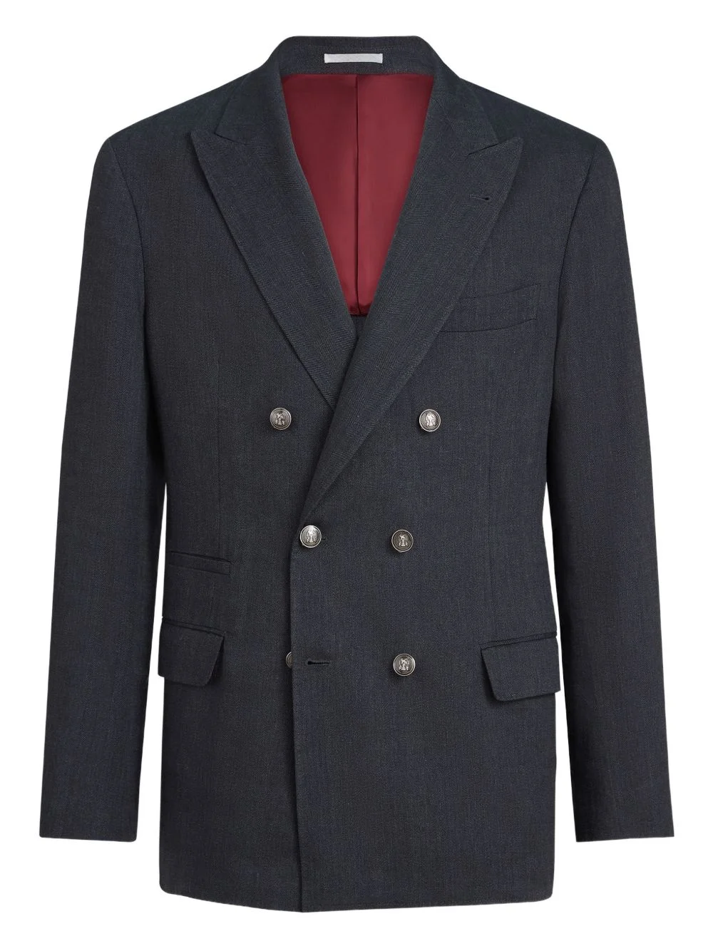 chevron double-breasted blazer Highlights - Grey - Chevron pattern - Double-breasted - Flap pockets - Silver-tone buttons Made in Italy Composition Cotton 100%, Eco Linen 60%, Virgin Wool 40% Washing instructions Read Manufacturer Guidelines