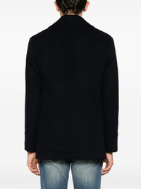 double-breasted felted coat Highlights - Midnight blue - Wool - Felted - Wide notch lapels - Double-breasted button fastening - Long sleeves - Two diagonal pockets to the sides - Partial lining - Internal pockets - English rear vents - Straight hem Made in Italy Composition Lining: Cotton 100%, Cupro 100% Outer: Wool 100% SIZE & FIT Model measurements Height 6 ft 2 in(1.87 m) Bust/Chest 36.41 in(92.5 cm) Hips 35.43 in(90 cm) Waist 29.52 in(75 cm) FittingInformation Designed to be unstructured, offering a loose fit throughout The vented hem offers movement at the rear Made from a midweight non-stretch fabric This piece fits true to size – take your usual size