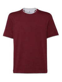 burgundy ribbed texture contrasting collar short sleeves straight hem - Color: RED - Made in: Italy - Designer Style ID: M0B137427 C0A16 Composition and care Cotton: 100.0%