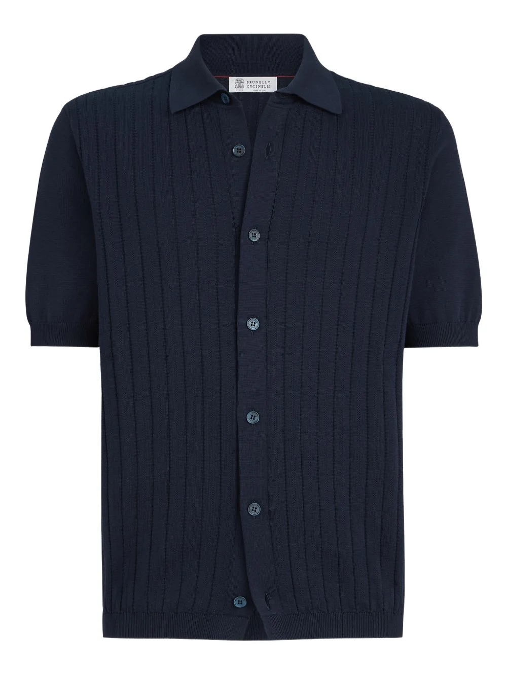 ribbed knit shirt Highlights - Navy blue - Textured - Rib knit - Short sleeves - Collared - Button fastening Made in Italy Composition Cotton 100% Washing instructions Hand Wash