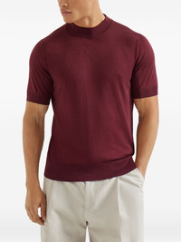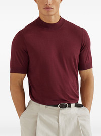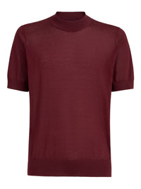 mock-neck knit T-shirt Highlights - Red - Short sleeves - Knit construction - Mock neck Made in Italy Composition Silk 62%, Cotton 38% Washing instructions Read Manufacturer Guidelines