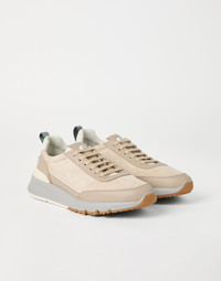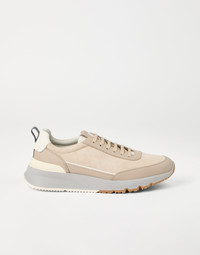 Refined Brunello Cucinelli materials elevate the Active style of these new sneakers. The velvety, slightly irregular look of washed suede is paired with semi-polished calfskin trim, enriching this style with a sophisticated texture contrast. The fine grooves on the back of the two-tone EVA outsole and on the TPU insert at the base of the heel counter complete the style of this footwear. MATERIALS Manufacturing of the refined washed suede involves hand-buffing that enriches the velvety texture with slightly irregular coloring. A leather lining completes the shoe. DETAILS Flat fabric laces Leather lining Detachable insole Sole in lightweight micro rubber REAL LEATHER