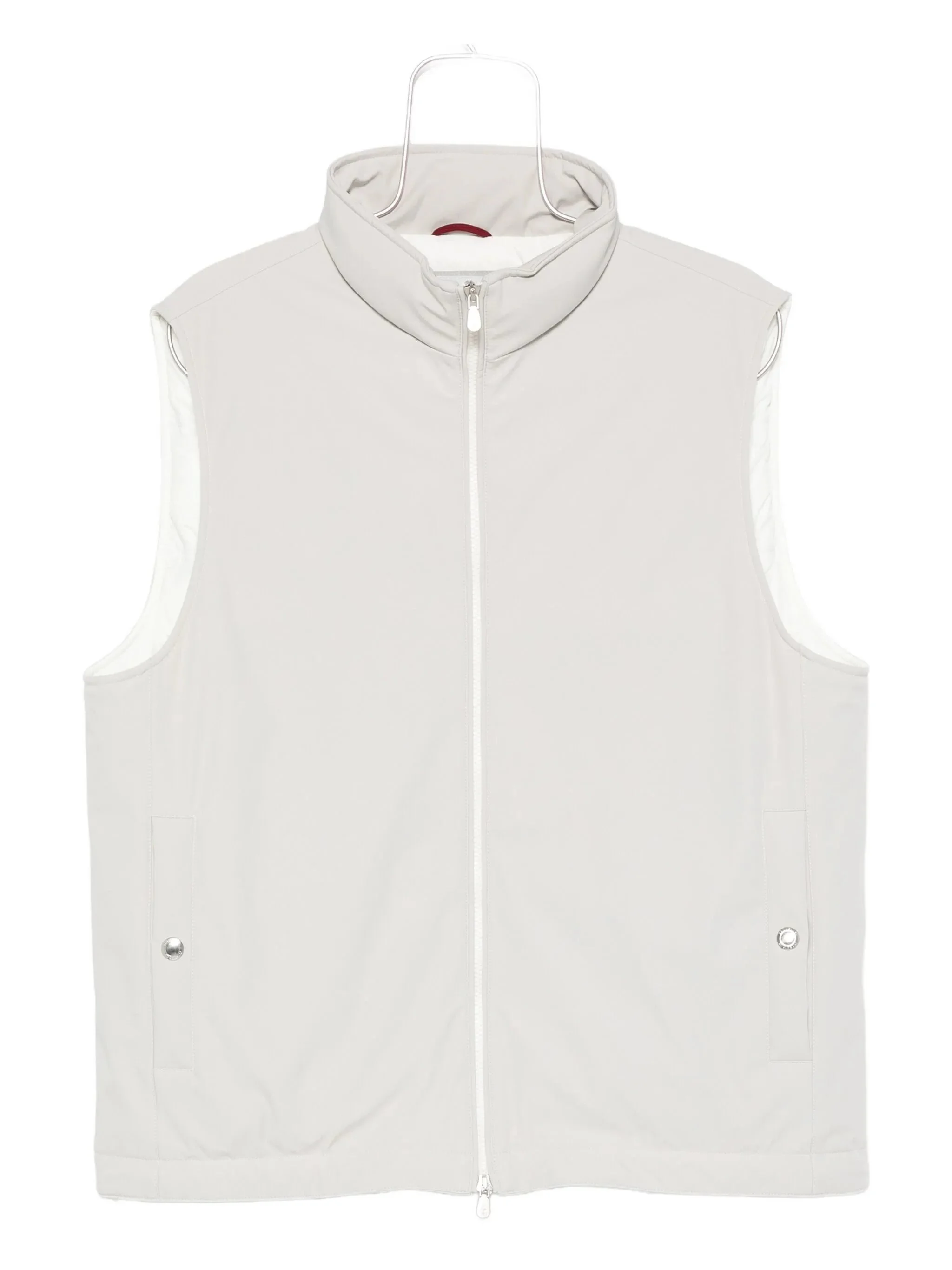 grey zip fastening stand collar sleeveless design button detailing - Color: GREY - Made in: Italy - Designer Style ID: MV4061776 CW926 Composition and care Lining Composition Cotton: 100.0%, Outer Composition Polyamide: 88.0%, Lining Composition Polyamide: 100.0%, Lining Composition Polyester: 100.0%, Outer Composition Spandex/elastane: 12.0%, Lining Composition Goose Down: 90.0%, Lining Composition Goose Feather: 10.0%