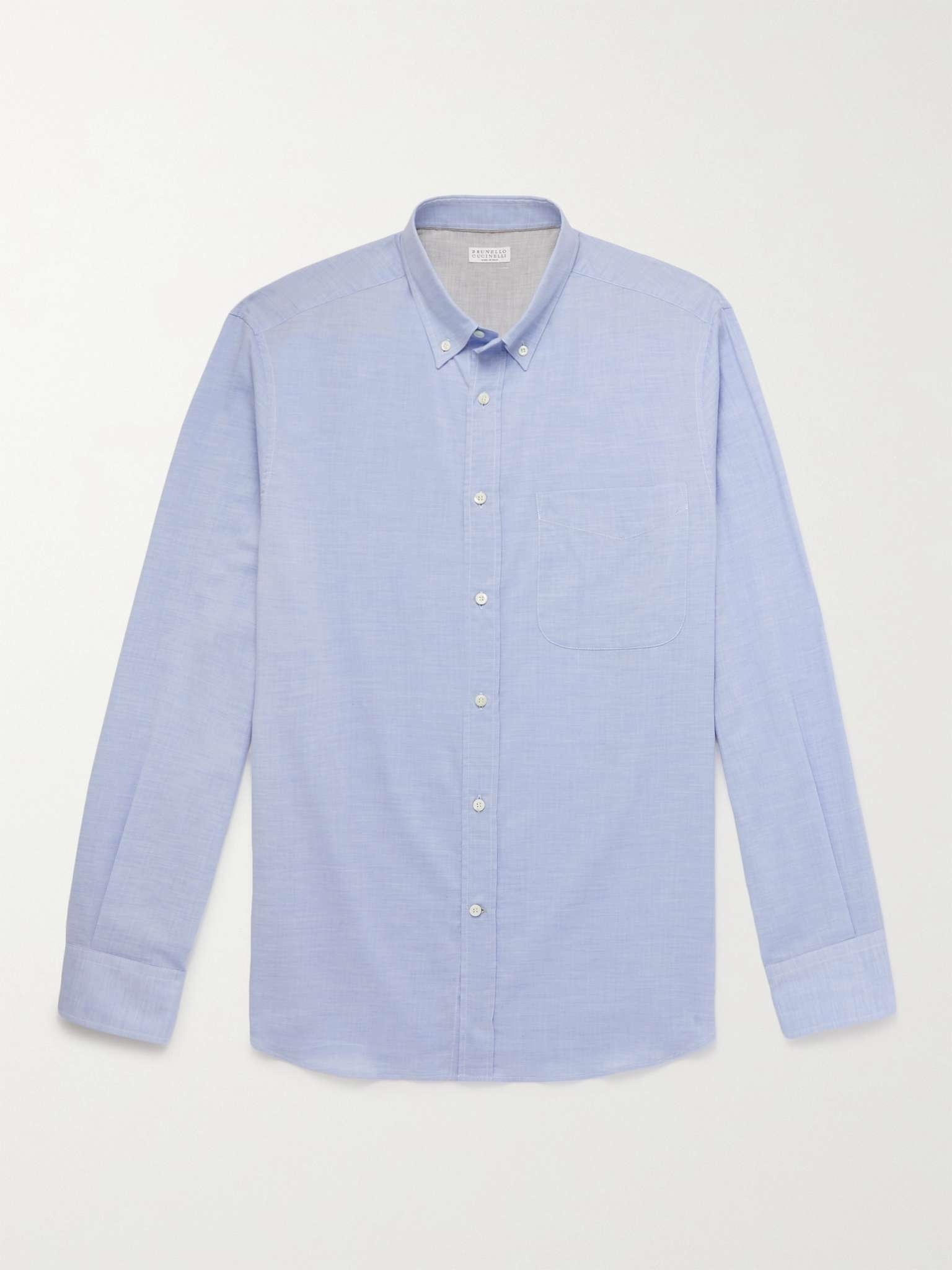 - Blue cotton - Button-down collar, buttoned cuffs, chest patch pocket, back box pleat - Button fastenings - 100% cotton - Hand wash - Designer colour: Cloud - Mother-of-pearl: Indonesia
